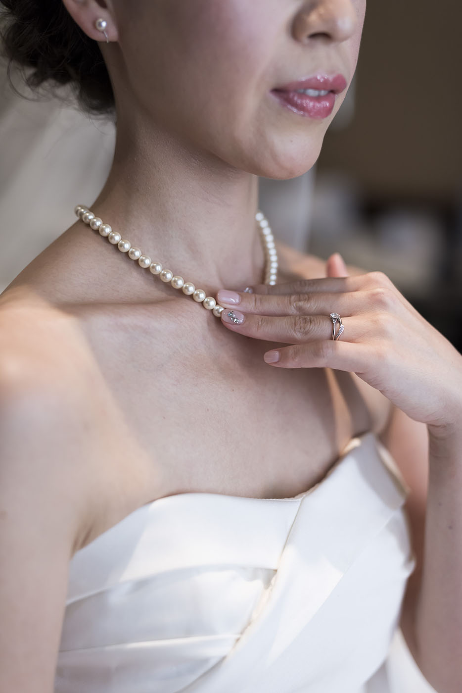 胸元はハートシェイプでドレープを寄せて