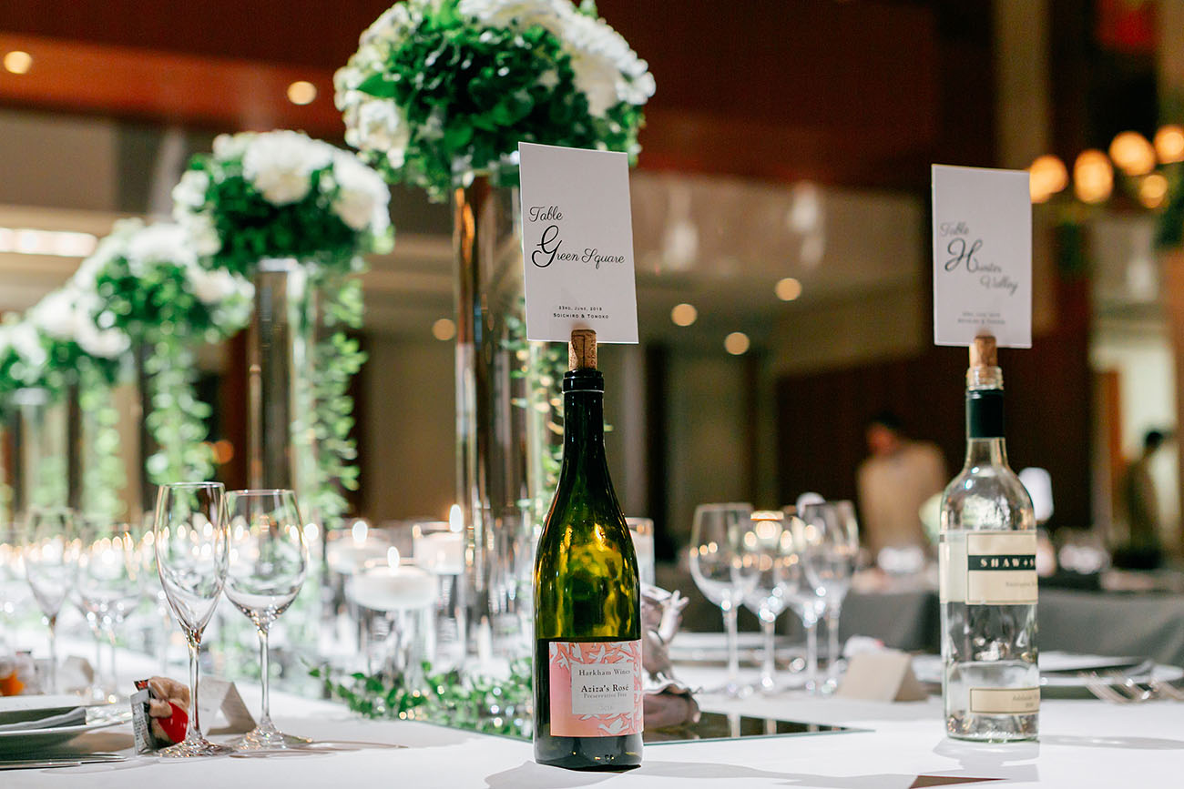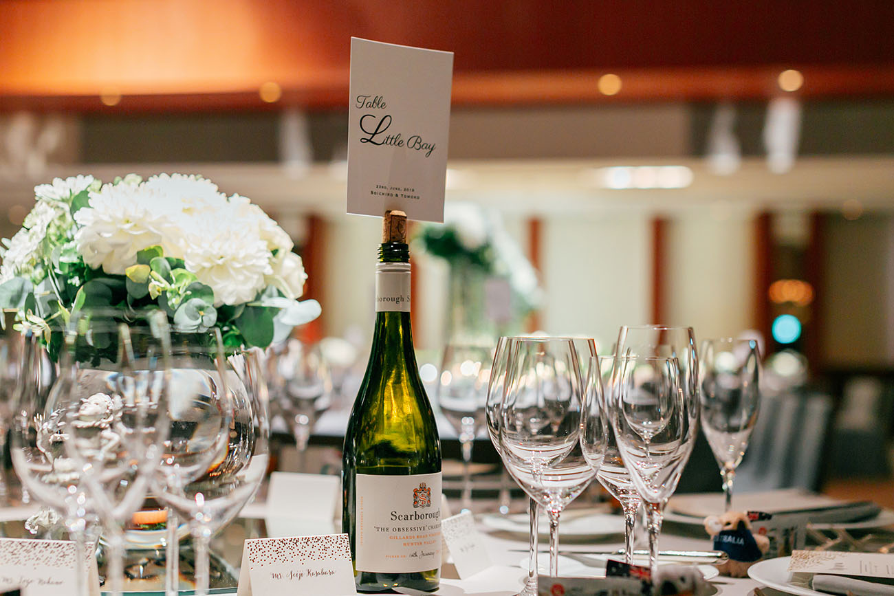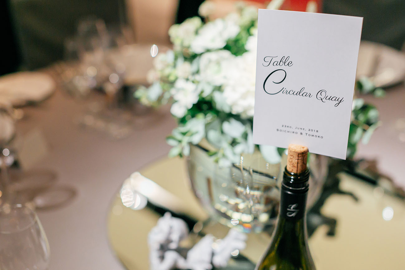 カードスタンドには、おふたりで飲んだオーストラリアワインのボトルを使ったところもポイントです