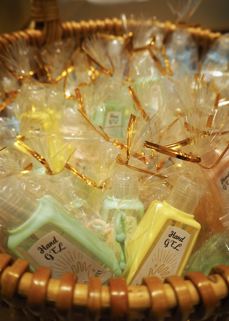 手指消毒ジェルをひとりひとりにお渡しする等々